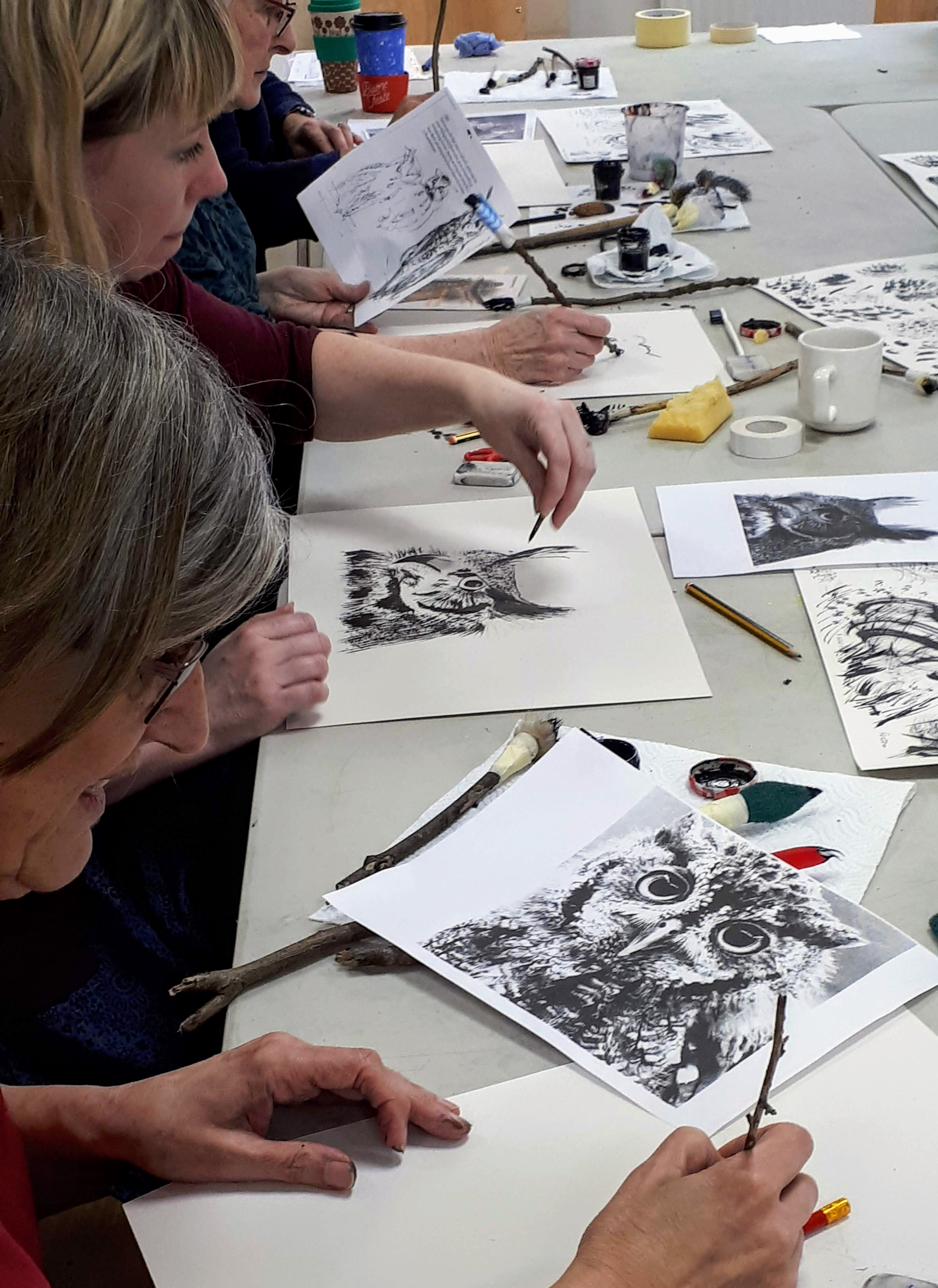 The weekly classes cover a wide range of media and there is an opportunity to explore everything from still life to landscapes to portraits. Classes aim to be enjoyable, friendly and supportive with regular demonstrations and one to one guidance. We also undertake occasional gallery visits and sketch trips and students have the opportunity to display work in informal class exhibitions from time to time.